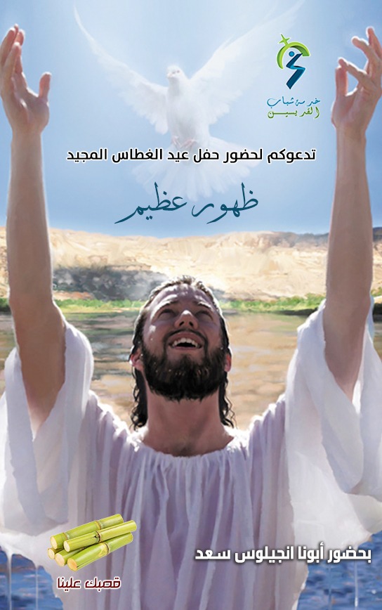 تدعوكم خدمة شباب لحضور حفل عيد الغطاس يوم الخميس ١/١٧ الساعة ٧ م